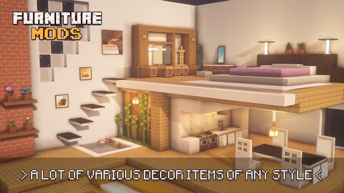 Если вы всегда хотели найти потрясающие моды на мебель для Майнкрафта, то вы пришли по адресу! Моды для MCPE из нашей подборки позволят вам украсить свой дом красивой и элегантной мебелью для MCPE (и Bedrock). Вы найдете огромное разнообразие предметов декора для всех комнат, включая гостиную, ванную, спальню и кухню. Наши моды на мебель в Майнкрафт и аддоны декора для MCPE включают камеры наблюдения, современные инструменты, элементы дизайна интерьера и технику, такую как телевизоры, кровати, стулья, столы, шкафы, компьютеры и ноутбуки и многое другое. Также это приложение включает карты зданий, особняков и современных домов, где вы можете протестировать всю мебель в Майнкрафт ПЕ. Превратите свой дом в мечту и привнесите в игру настоящий опыт мебельного ремесла!