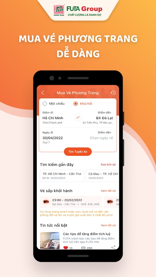 Скачайте приложение FUTA — PHƯƠNG TRANG DV VẬN TẢI для Android бесплатно - последняя версия (7.22.2) уже доступна для установки на ваш телефон или планшет.