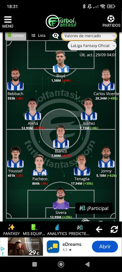 FutbolFantasy предлагает базовую информацию об испанской Ла Лиге. Всё необходимое для комплектации команд для Comunio, Biwenger, Liga Fantasy Marca, Futmondo, Mister, Sorare и других онлайн-игр в фэнтези-футбол. Мы также предлагаем вероятные стартовые составы для Премьер-лиги, Серии А, Сегунды и Лиги чемпионов.