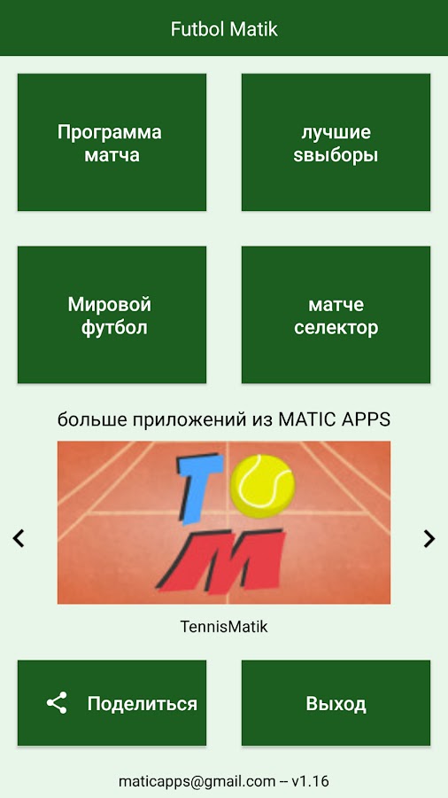 Скачайте приложение FutbolMatik для Android бесплатно - последняя версия (2.34) уже доступна для установки на ваш телефон или планшет.