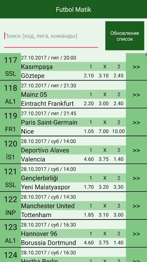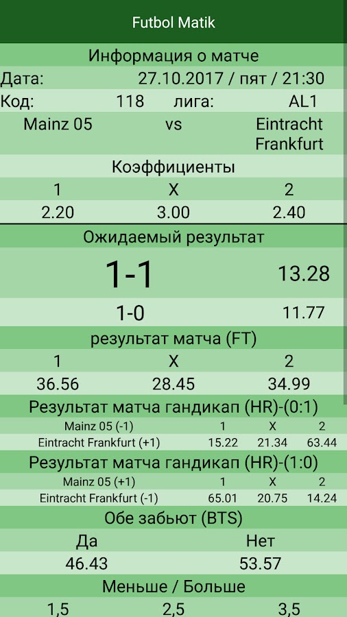 FutbolMatik — это простое в использовании приложение, которое оценивает предстоящие соответствия, используя результаты прошлых матчей