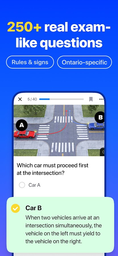1. Собственный банк вопросов: Разработанные за 13 лет, наши материалы, специфичные для Онтарио, не имеют себе равных по точности и актуальности. Правила MTO, формат DriveTest, тест на знание правил дорожного движения G1 (письменный), правила дорожного движения и дорожные знаки — все, что вам нужно для уверенной практики.