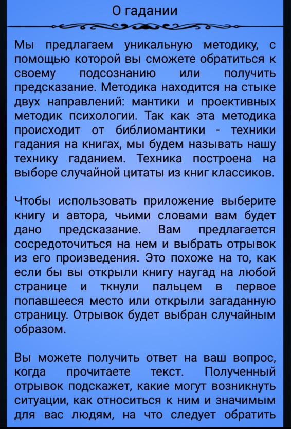 ✔ несколько книг для гадания, разбитые на тысячи цитат;