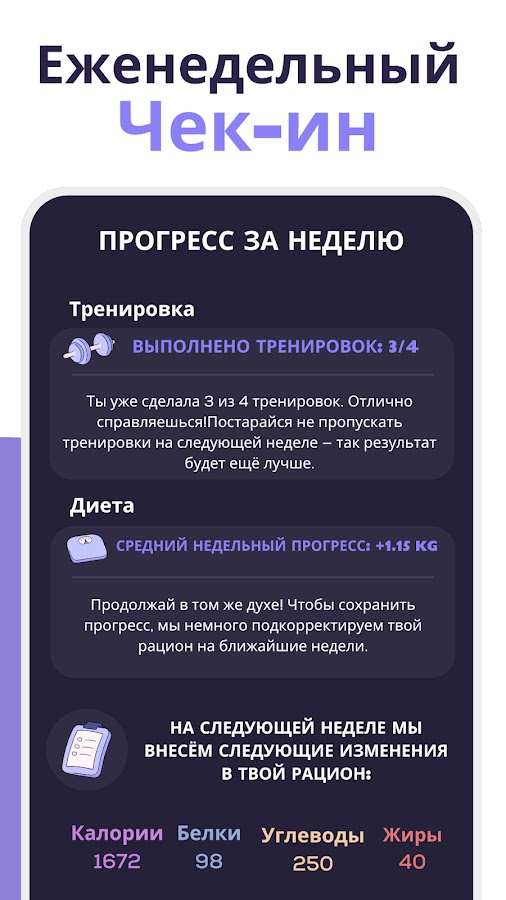 📈 Следите за прогрессом, получайте советы по питанию и улучшайте своё тело с каждым днём.