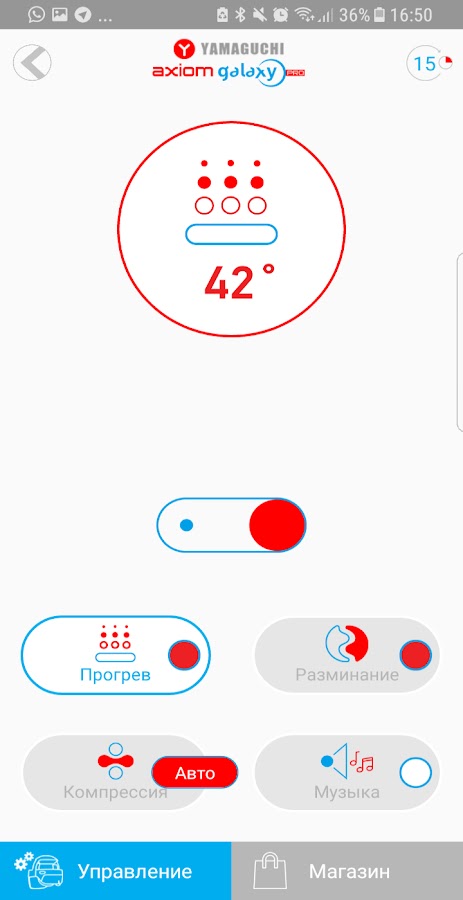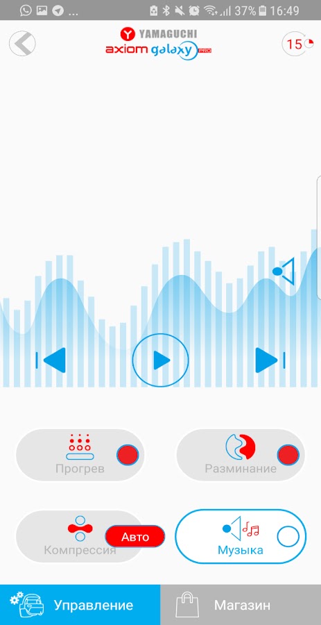 Приложение Galaxy PRO создано специально для того, чтобы сделать управление одноименным массажным шлемом YAMAGUCHI Galaxy PRO максимально удобным и простым. После успешной синхронизации с помощью приложения легко управлять всеми функциями шлема: будь то температура, компрессия, массаж верхней части головы или же музыка – все это можно отрегулировать одним лишь нажатием кнопки. Также в приложении есть раздел «Магазин», в котором можно ознакомиться со всей продукцией компании YAMAGUCHI.