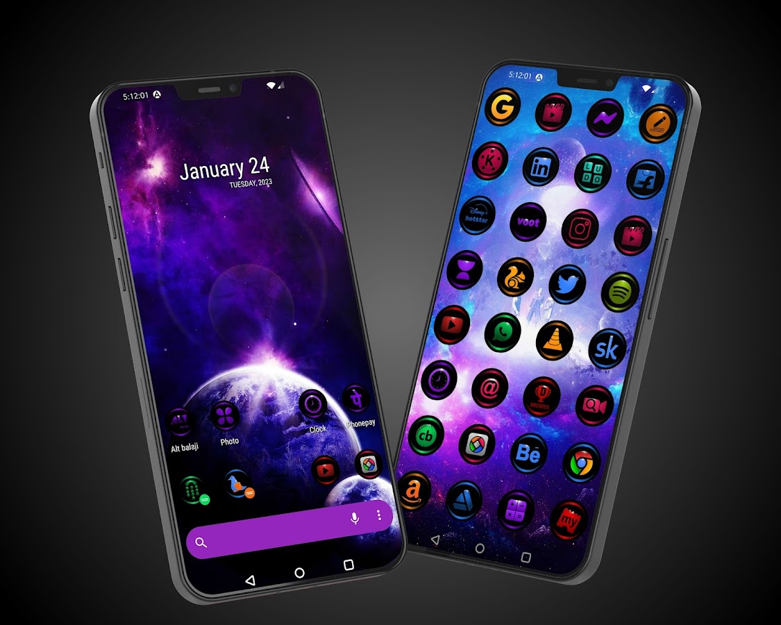 Приложение Galaxy Icon Pack также предоставляет вселенную, туманность и космические обои.