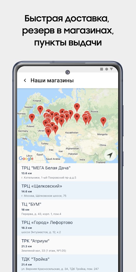 Для тех, кто любит пощупать товар перед покупкой, в приложении есть карта фирменных магазинов Samsung. Вы сможете узнать, где ближайший магазин и график его работы. Нужно вспомнить, когда, что и за сколько покупали? Посмотрите в истории заказов, там представлена вся купленная вами электроника и бытовая техника. Непонятно, как работает доставка день в день? Все детали, условия и сроки вы найдете в приложении.