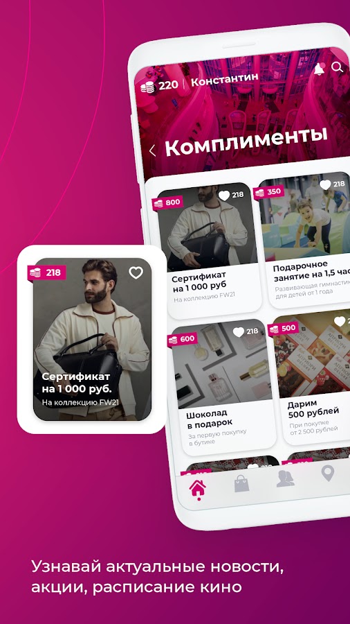 – Сканируй чеки от покупок в ТРЦ, получай баллы и обменивай их на комплименты!