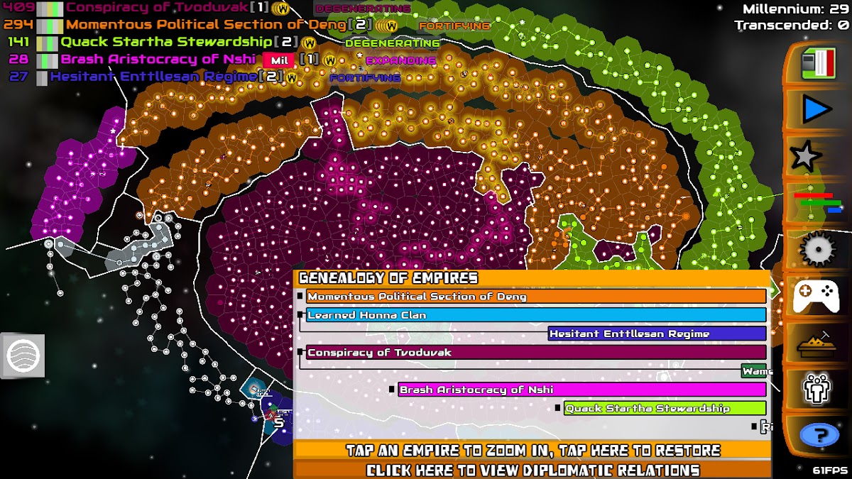 В режиме Emperor вы можете управлять своей собственной империей, используя свой Flagship для усиления экспансии и обороны, строить и контролировать свои корабли и управлять своей шпионской сетью.