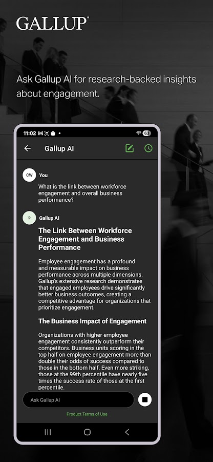 Скачайте приложение Gallup Access сегодня, чтобы развить свои сильные стороны, вовлечь команду и создать процветающую рабочую среду.