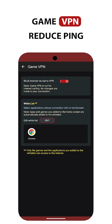 — VPN для игр: блокирует подключение к интернету всех других приложений во время игры.
