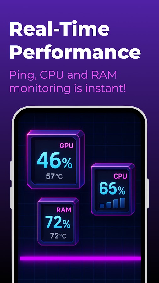 Будьте в курсе вашего FPS, температуры процессора, состояния батареи и задержки сети во время игры. Получите ценную информацию, которая поможет сделать игровой процесс более плавным.