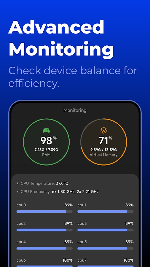 Game Launcher Turbo не изменяет настройки игры и не повышает производительность системы. Он предоставляет инструменты аналитики и интеллектуального мониторинга, которые помогут вам понять производительность вашего устройства.