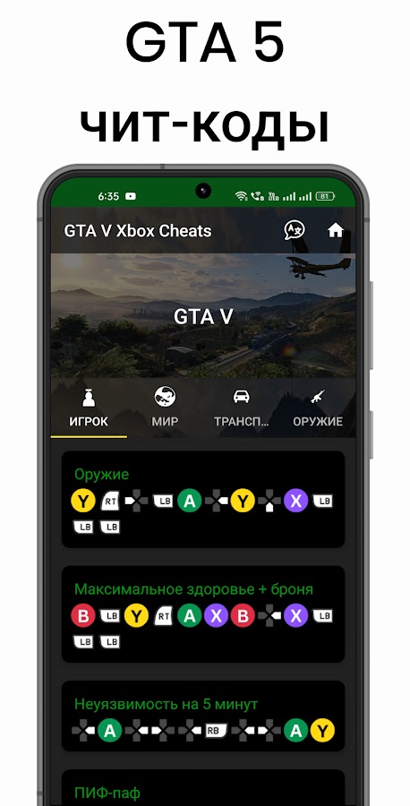 Скачайте приложение Читы GTA для Android бесплатно - последняя версия (245.0) уже доступна для установки на ваш телефон или планшет.