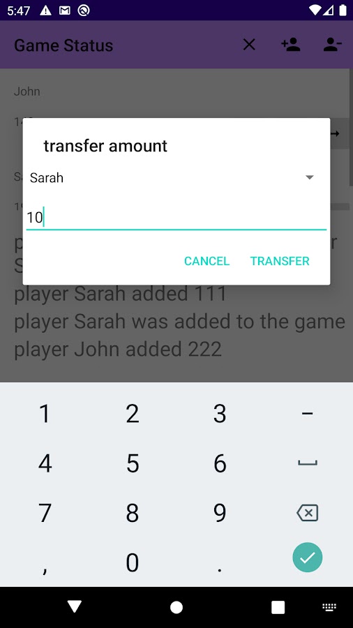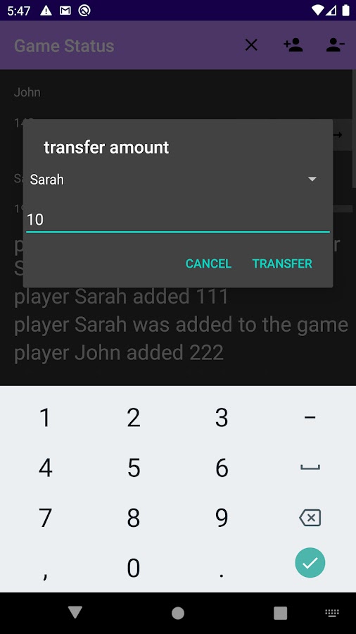 Статус игры — это счетчик вашей игры, где вы можете отслеживать свои деньги или количество предметов, которые у вас есть. В этом приложении вы можете добавлять, вычитать или передавать другому игроку, в этом приложении также есть журнал сообщений и функция автосохранения.