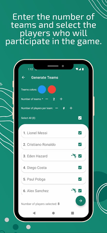 Приложение позволяет вводить имена игроков так, чтобы приложение затем делило их и организовывало команды для игр, быстро и легко.