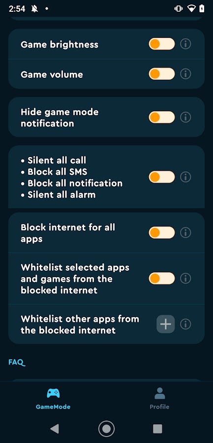 Цель нашего приложения — улучшить игровой процесс. Наша основная функция — возможность блокировать интернет-соединения, чтобы пользователи могли без перерывов сосредоточиться на своих играх. Это делается с помощью локальной службы VPN, которая не отправляет данные за пределы устройства.