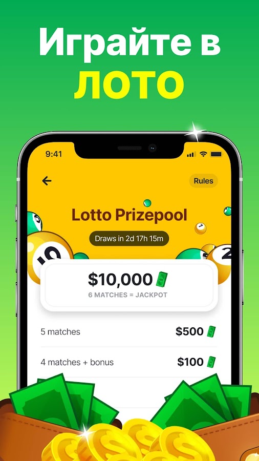 СОБИРАЙТЕ БИЛЕТИКИ: просто играйте в бесплатные игры и выполняйте задания, и вы получите билетики для участия в розыгрыше денежных призов! Пригласите друзей и получайте намного больше билетиков каждый день.
