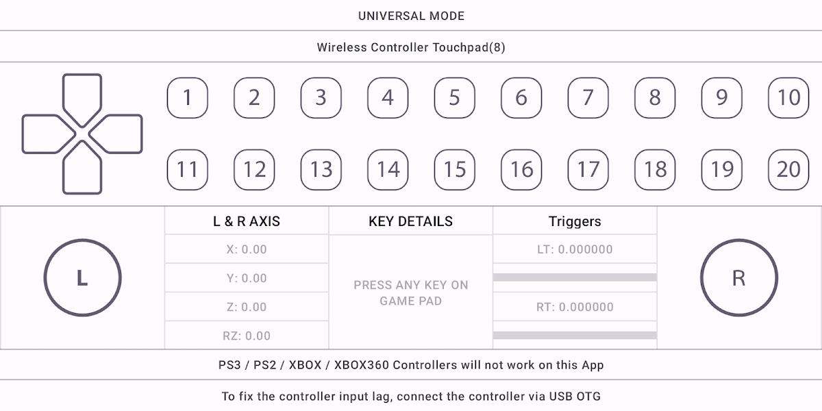 Gamepad Tester Lite — это лёгкое и простое в использовании приложение, разработанное для тестирования и проверки управления геймпадом и джойстиком с мгновенной обратной связью в реальном времени. Независимо от того, устраняете ли вы неполадки контроллера, проверяете отзывчивость кнопок или подтверждаете движение осей, это приложение предоставляет простое и надёжное решение.
