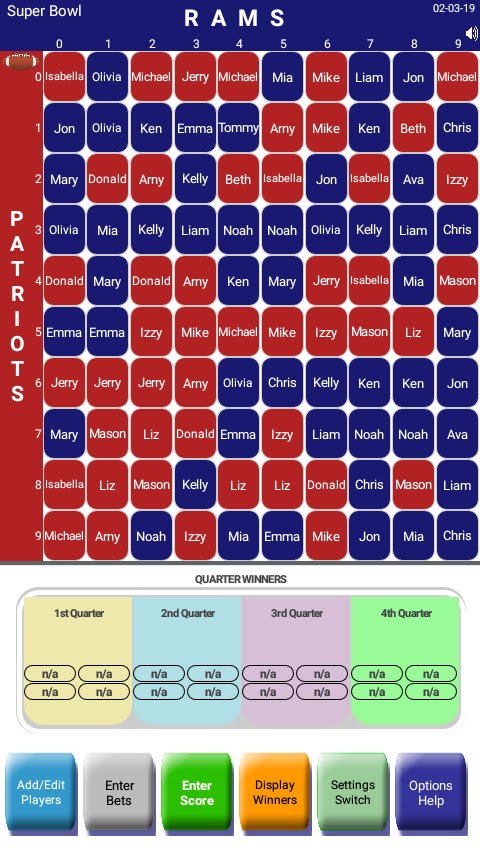 Просто настройте пул с названиями команд и начните добавлять игроков в пул. GamePool может отправить каждому игроку приглашение присоединиться к пулу со своими ставками. Когда вы получаете каждую ставку, GamePool может отправить вам подтверждение со своим персонализированным билетом на ставку. После начала игры вы вводите счет каждой четверти, чтобы определить победителей, и GamePool может автоматически отправить уведомление по электронной почте всем им.