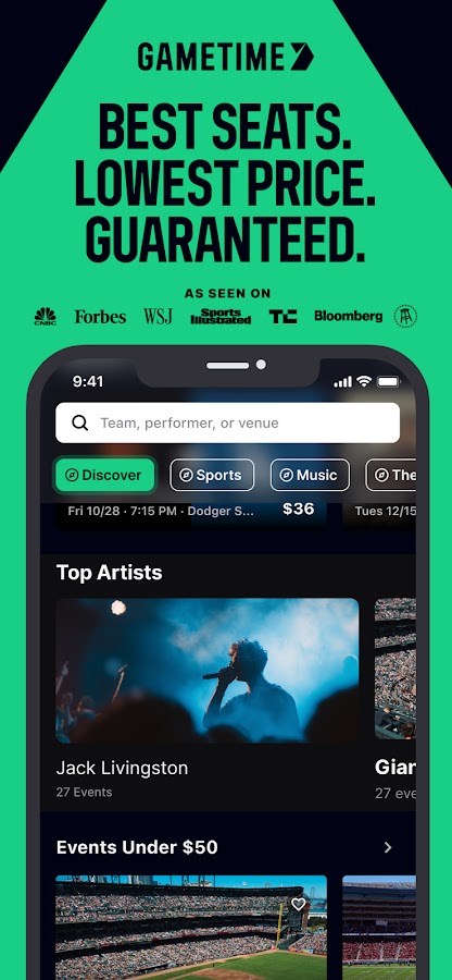 Gametime — это приложение, которое поможет *вам* заключить сделки на все ваши любимые мероприятия! Теперь с Gametime Ticket Coverage, самой полной политикой обслуживания и защиты в сфере билетов, которая включена бесплатно во все покупки. Gametime — это рынок перепродажи, а не основной поставщик билетов. Реселлеры могут выставлять билеты выше или ниже номинальной стоимости.