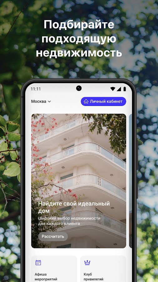 В одном мобильном приложении: все доступные проекты застройщика, каталог помещений с характеристиками, описанием инфраструктуры, ценами и планировками.