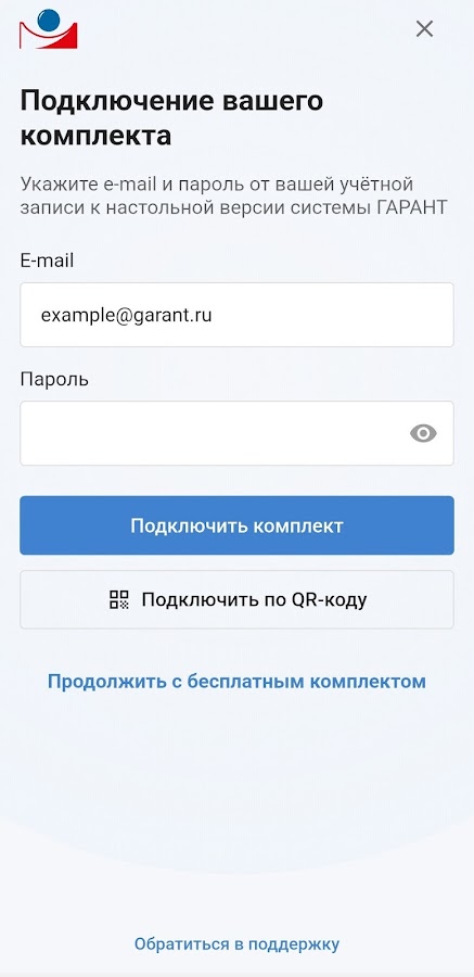 — Работать с документами системы даже при отсутствии оплаченного доступа к ГАРАНТу. Для этого зарегистрируйтесь в приложении и получите доступ к бесплатному комплекту клуба «Мой ГАРАНТ». Также Вы можете авторизоваться, используя логин коммерческой Интернет-версии и получить доступ ко всем документам Вашего комплекта.