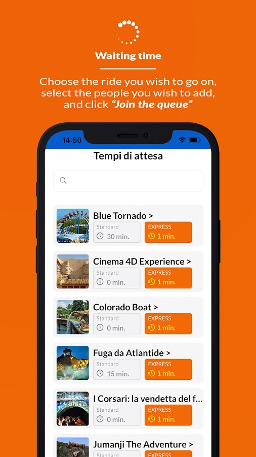 — Примерно за 5 минут до своей очереди вы получите уведомление «Скоро ваша очередь!», подойдите к аттракциону, после чего вы получите уведомление «Твоя очередь», затем подойдите к входу Gardaland Express и положите свой смартфон на турникет где указано и получайте удовольствие!