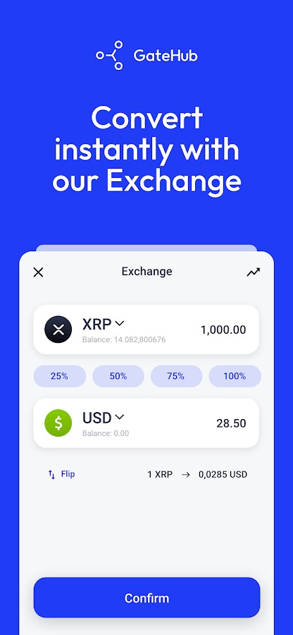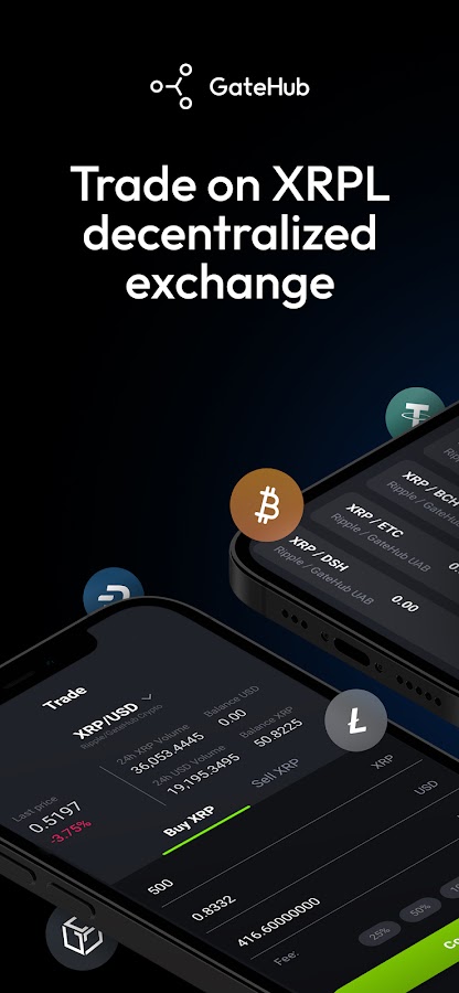 GateHub Wallet прост в настройке и использовании. Он позволяет вам получить доступ к децентрализованной сети XRPL с мгновенными и дешевыми платежами через блокчейн и торговлей на XRPL DEX.