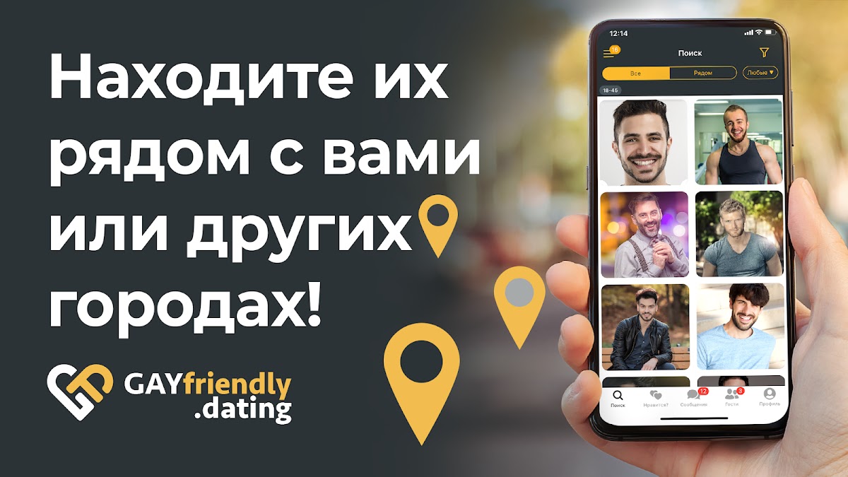 Приложение гей знакомств GayFriendly было разработано с большой любовью и вниманием к мелочам. У нашей команды больше 10 лет опыта в дэйтинговых проектах и мы постарались совместить все действительно полезные возможности, при этом не перегружая функционал. Если вы ищите знакомства для геев, гей партнера, gei znakomstva для встреч, отношений, любви или брака мы будем рады вам помочь!
