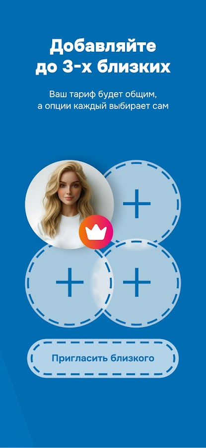 Бесплатно подключайте до трёх членов семьи или друзей к своей подписке – они смогут пользоваться вашим тарифом и сами выбирать нужные им опции.