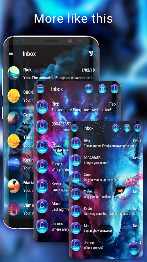 Приложение Wolf messenger plus theme 2022 — бесплатная тема для SMS! Это одна из лучших тем SMS-мессенджеров 2022 года с одним из лучших бесплатных классных фонов, с деталями HD, и вы можете убедиться в этом, просмотрев скриншоты. Настройте приложение SMS для своего телефона с помощью этой красочной темы wolf messenger версии 2022!