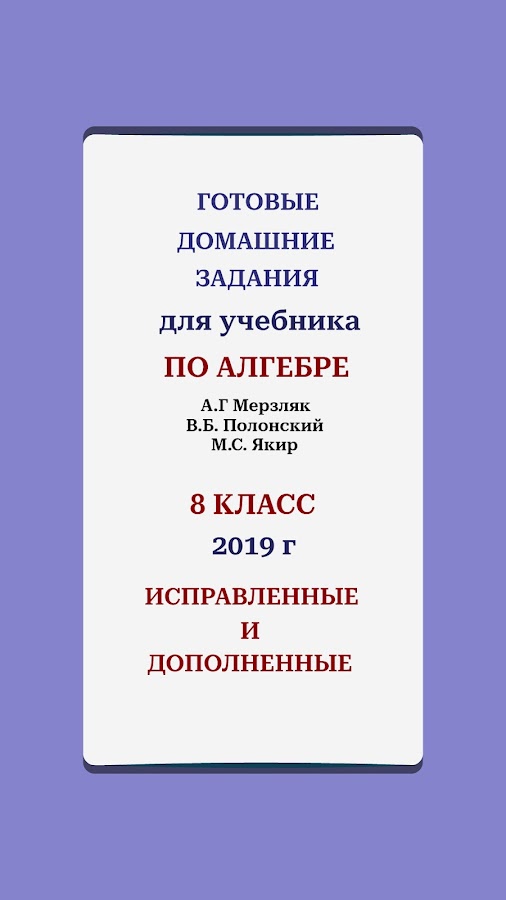 Скачайте приложение ГДЗ Алгебра 8 класс Мерзляк для Android бесплатно - последняя версия (1.1.5) уже доступна для установки на ваш телефон или планшет.