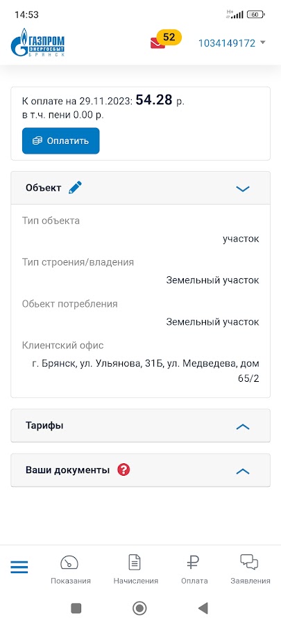 Клиентский офис для физических лиц в смартфоне. Здесь можно следить за балансом лицевого счета, открытого в ООО «Газпром энергосбыт Брянск», передавать показания приборов учета, получать квитанции, оплачивать ЖКУ без комиссии, подавать заявления.