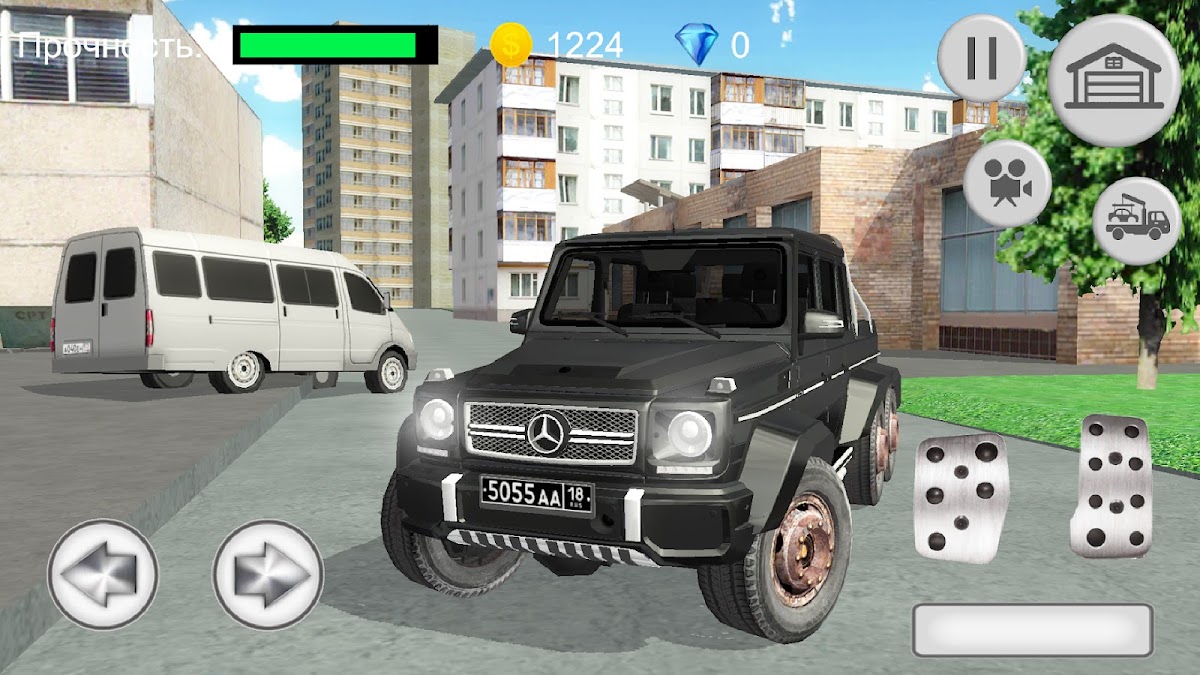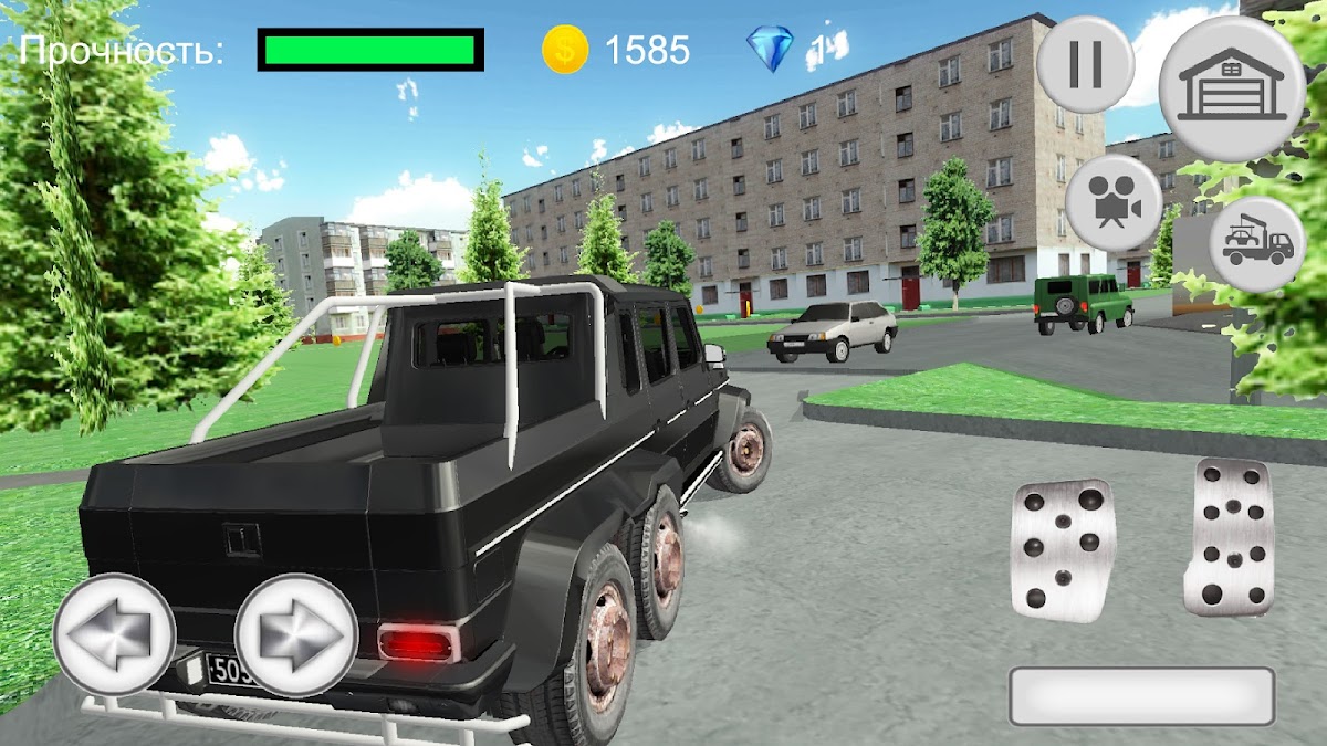 Игра про машину Гелик G-class AMG — симулятор вождения по дорогам города и по грязи бездорожья реальной русской деревни. Почувствуйте криминальную атмосферу русского города 90-х годов. Вам предстоит ездить по городу и его улицам, по грунтовке и грязи в деревне, и зарабатывать деньги, чтобы прокачать ваш шестиколесный внедорожник Gelendwagen 6×6 — поднять мощность двигателя, увеличить максимальную скорость, сменить колеса или перекрасить машину!