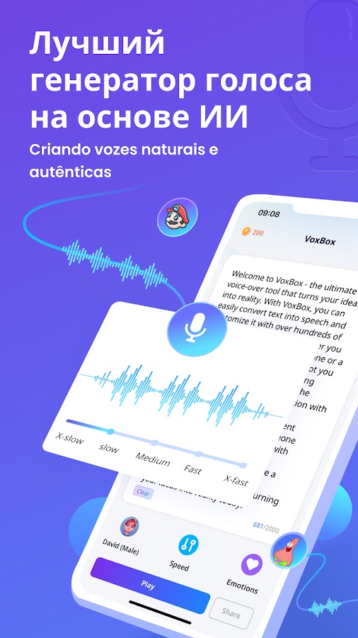 VoxBox превращает работу со звуком в творчество и удовольствие. Хотите озвучить документальный фильм, сделать мем для TikTok или создать цифрового персонажа?