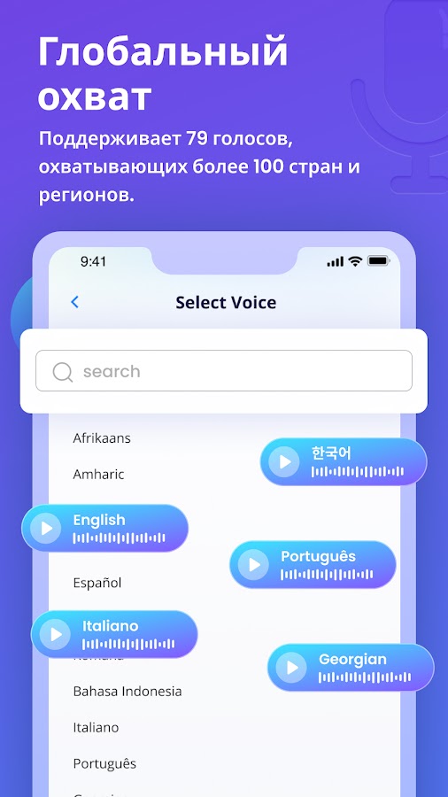 Создавайте глобальный контент с голосами, акцентами и персонажами разных языков — идеально для брендов, преподавателей и международных авторов.