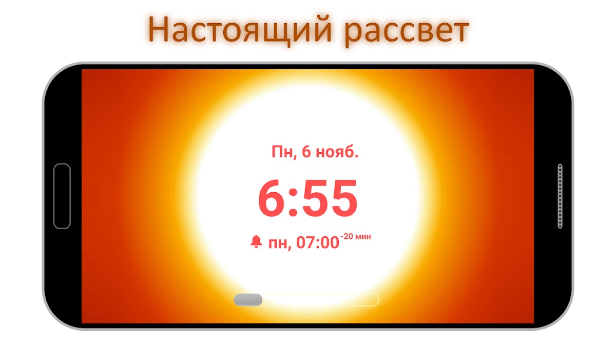 ✓ Настоящий рассвет: солнце меняет цвет с ярко-красного на светло-желтый, имитируя настоящий рассвет.