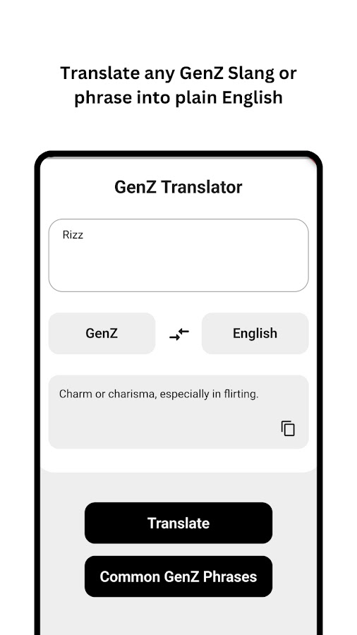 Вам сложно следить за новейшим сленгом GenZ и современными тенденциями интернет-жаргона? С нашим приложением GenZ Slang Translator вы можете мгновенно переводить и понимать самые популярные слова, фразы и тексты GenZ в социальных сетях и поп-культуре.
