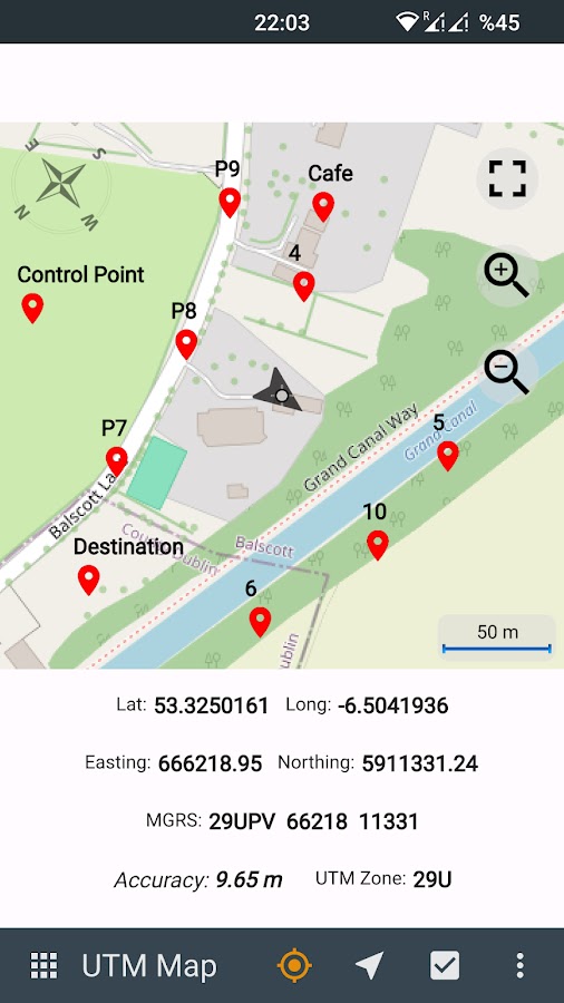 — Разбивка координат широты и долготы. Перейдите к нему со своей позиции с помощью метки расстояния на карте.