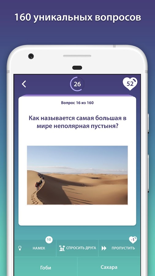 Игры викторины в целом — отличный способ хорошо провести время и узнать что-то новое. С таким количеством вопросов и ответов для викторины + забавные факты для каждого из них, эта Викторина по Географии — № 1 среди приложений. Возможность отвечать на вопросы для викторины на разных языках делает эту игру гораздо интереснее! Установи игру Викторина по Географии и наслаждайся, узнавая новые интересные факты через вопросы для викторины с ответами!