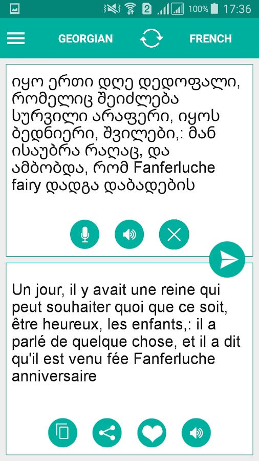 Бонусная функция — Изучите и освойте произношение, поскольку грузинско-французский переводчик имеет встроенную аудиофункцию. Слушайте переведенный текст и удобно общайтесь с друзьями, подругами, парнями, членами семьи или туристами.