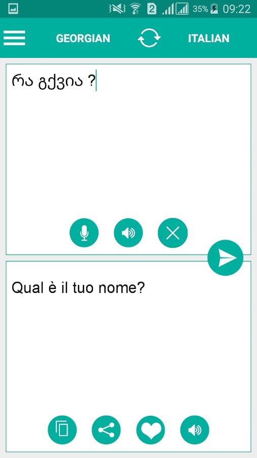 Бонусная функция — Изучите и освойте произношение, поскольку грузинско-итальянский переводчик имеет встроенную аудиофункцию. Слушайте переведенный текст и удобно общайтесь с друзьями, подругами, парнями, членами семьи или туристами.