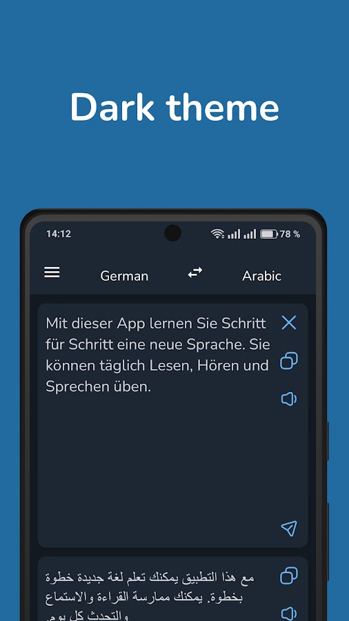 Переводчик с немецкого на арабский — быстро, конфиденциально, офлайн. Теперь с темным режимом!