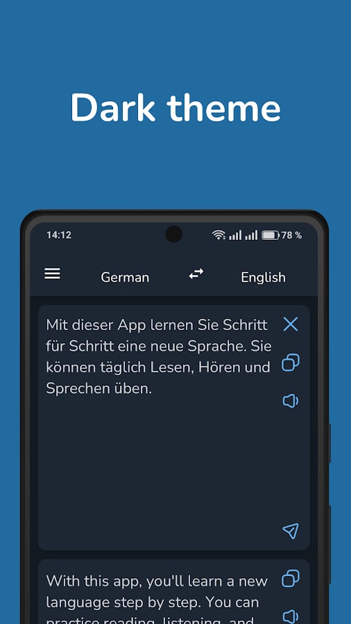 Переводчик с немецкого на английский — быстро, конфиденциально, офлайн. Теперь с темным режимом!