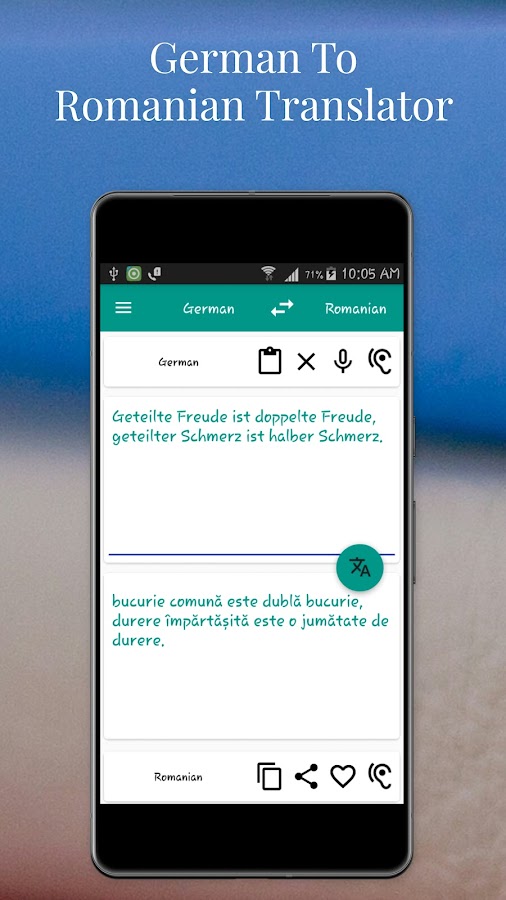 Скачайте приложение German To Romanian Translator для Android бесплатно - последняя версия (66.0) уже доступна для установки на ваш телефон или планшет.