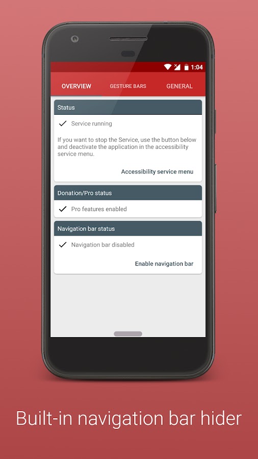 Если вам нравится моё приложение, я был бы очень рад, если бы вы рассмотрели возможность приобретения версии Пожертвования/Pro (https://play.google.com/store/apps/details?id=com.conena.navigation.gesture.control .pro).