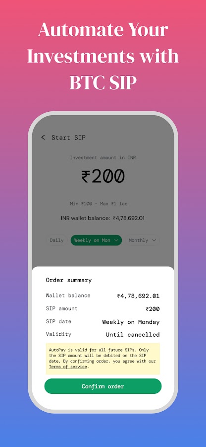 Автоматически инвестируйте в BTC как в паевой инвестиционный фонд — ежедневно, еженедельно или ежемесячно.
