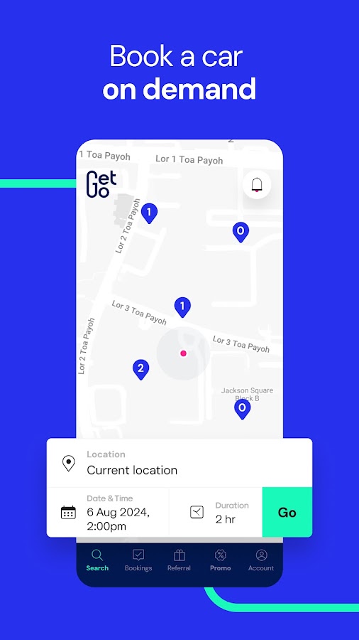 GetGo — это самый простой способ получить доступ к машине в Сингапуре и получить ключ к каршерингу! Просто зарегистрируйтесь, бронируйте и разблокируйте автомобили GetGo в нашем мобильном приложении. Наши автомобили доступны в сотнях точек по всему острову круглосуточно, без выходных, в дождь и в ясную погоду.