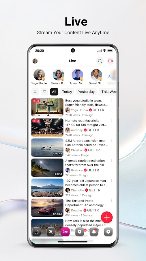 Прямая трансляция с сообществом. Прямая трансляция длится до 60 минут с помощью простой в использовании технологии для любого пользователя GETTR.